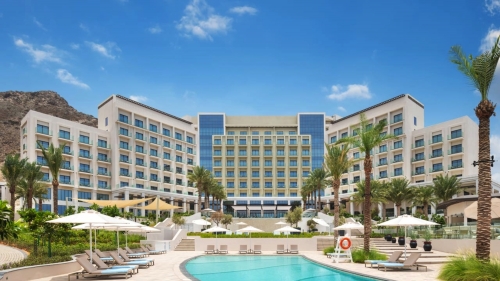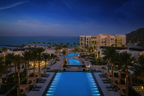 Das Resort liegt nur 90 Minuten von Dubai entfernt. Die direkte Strandlage sowie das majestätische Hajar-Gebirge im Hintergrund verleihen dem Hotel den Charakter.