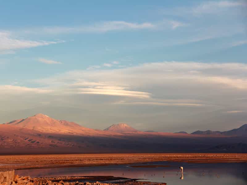 Der Sunset in der Atacama-Wüste gehört wohl zu den schönsten und vielfältigsten vor dieser einmaligen Kulisse. Auf der einen Seite der Salzsee mit den Flamingos und auf der andern Seite die leuchtenden Anden.