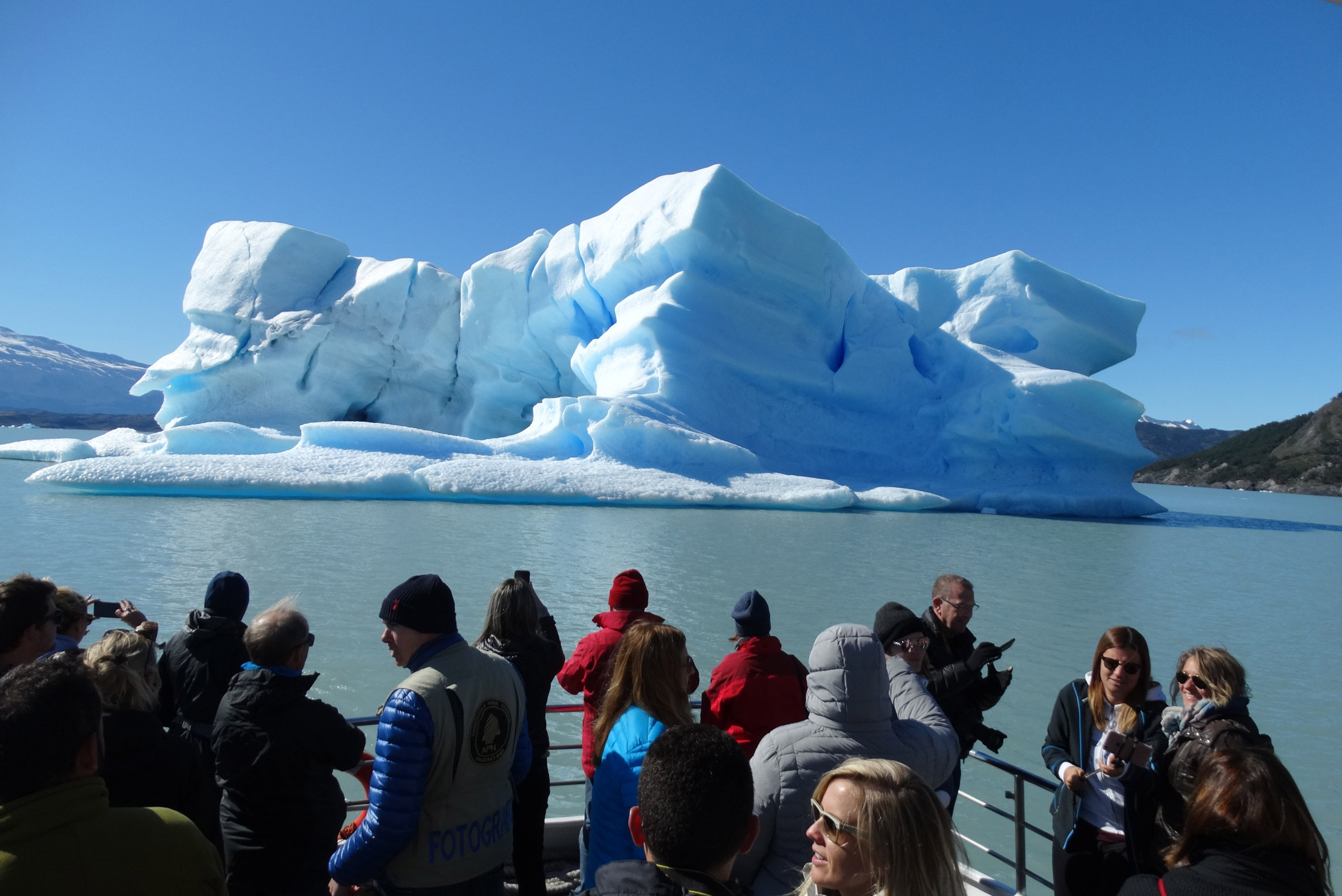 Mit dem Boot fährt man auf dem Nordarm zwischen Eisbergen und atemberaubenden Landschaften mit Blick auf den Kanal und den pegazzini Gletscher, wie auch den Upsala Gletscher.