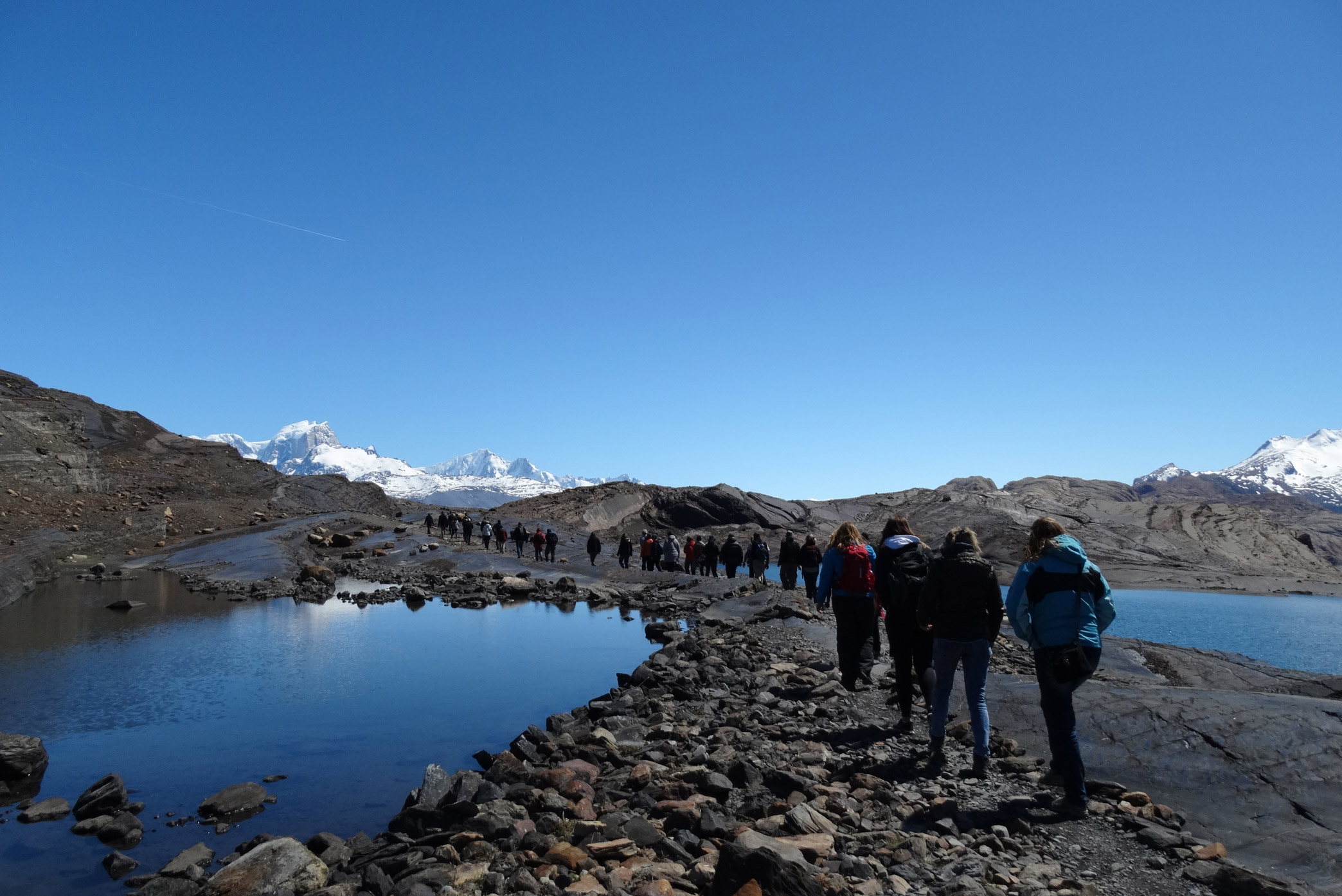 Abfahrt vom Hotel aus zum Gletscher, der sich im Glacier Nationalpark 80km von Stadt El Calafate entfernt befindet. Nach dem Verlassen der Stadt sieht man auf der rechten Strassenseite den Argentino See mit der Redonda-Bucht, die eine interessante Vielfalt an Vögeln bietet. Der Gletscher ist ein beeindruckender Eisfluss mit einer Oberfläche von 257 Quadratkilometern, einer Länge von 30 Kilometern und einer Breite von vier Kilometern. Die Höhe der Vorderwand liegt zwischen 50 und 60 Metern über dem Seespiegel. Im zentralen Teil des Gletschers hat das Eis eine Tiefe von 250 bis 350 Metern. Dieser gefrorene Fluss entspringt dem kontinentalen Eisfeld und verursacht in seinem langsamen Verlauf Erdrutsche und Explosionen, die dem Gletscher zu einem Wunder in ständiger Bewegung machen. Es ist eine Show, die nicht nur durch ihre visuelle Schönheit besticht, sondern auch durch das ständige Krachen, das man aus ihrem inneren hört.