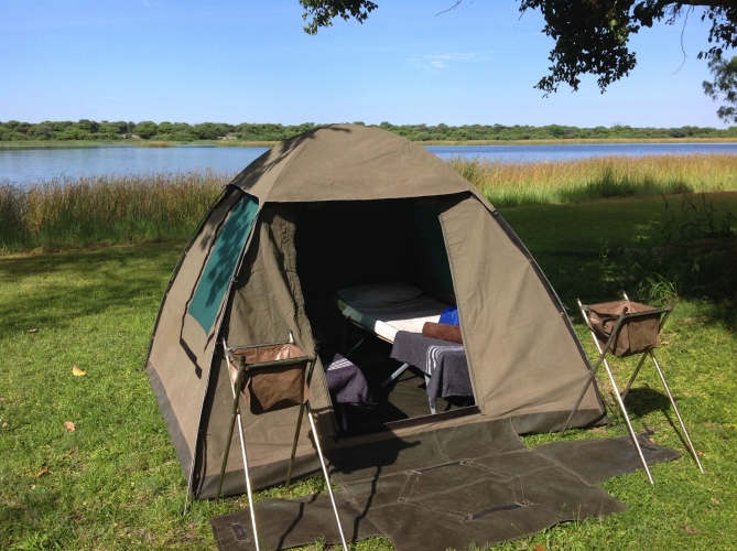 Die kommenden Tage reisen wir in gut ausgestatteten offenen 4x4-Geländewagen mit unseren lokalen Guides tief in den Busch. Die Geländewagen meistern die teils schwierigen Strassen und Pisten ohne Probleme. Unser Gepäck und die gesamte Camp-Ausrüstung wird in Begleitfahrzeugen zum nächsten Übernachtungsort vorausgefahren. Dies gibt uns die Freiheit, lediglich mit Kameras und Tagesrucksäcken ausgestattet und einem Picknick-Mittagessen im Gepäck, ausgiebig auf Pirschfahrten zu gehen und unsere Zeit optimal zu nutzen. Gegen Sonnenuntergang erreichen wir jeweils unser Camp im Busch. Die komfortablen 2-er-Zelte mit Campingbetten sind eingerichtet, Buschduschen und Toiletten aufgestellt und ein knisterndes Lagerfeuer heisst uns willkommen. Das Lachen der Hyäne , das erdige Brüllen eines Löwen und das tiefe Grunzen eines Nilpferds begleitet uns in den Schlaf. Diese vier Tage richten sich nach den Tiervorkommen und werden flexibel gestaltet. (F, M, A).