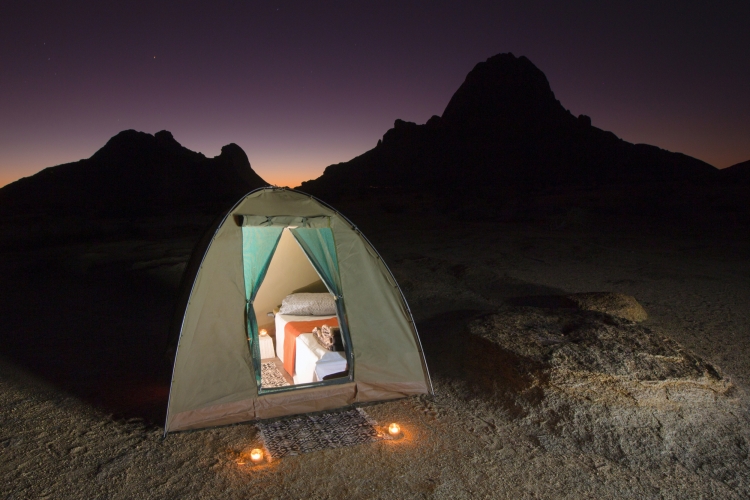 Als Unterkunft stehen grosse Iglu-Zelte mit Feldbetten und Decken zur Verfügung. Wir campieren in sicherer Umgebung. Unsere Guides sind für den Auf- und Abbau der Zelte verantwortlich. Sie dürfen gerne mithelfen. Die Temperaturen in Namibia im Juli und August können in der Nacht bis zu Null-Grad sinken. Bitte denken Sie daran, wenn Sie packen. Wir empfehlen Daunenschlafsäcke, Mützen und Handschuhe.