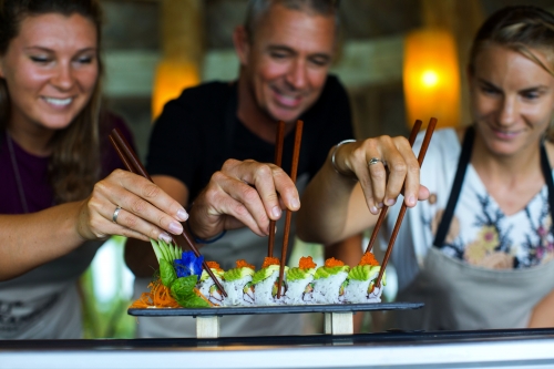 Die Family Villa (340 m2) bietet zwei Schlafzimmer und einen gemeinsamen Wohnraum sowie eine eigene Hängematte in der Lagune. Die 2 Family Villen Pool (385 m2) verfügen über zwei Schlafzimmer und einen geschlossenen Wohnbereich mit Panoramafenster.