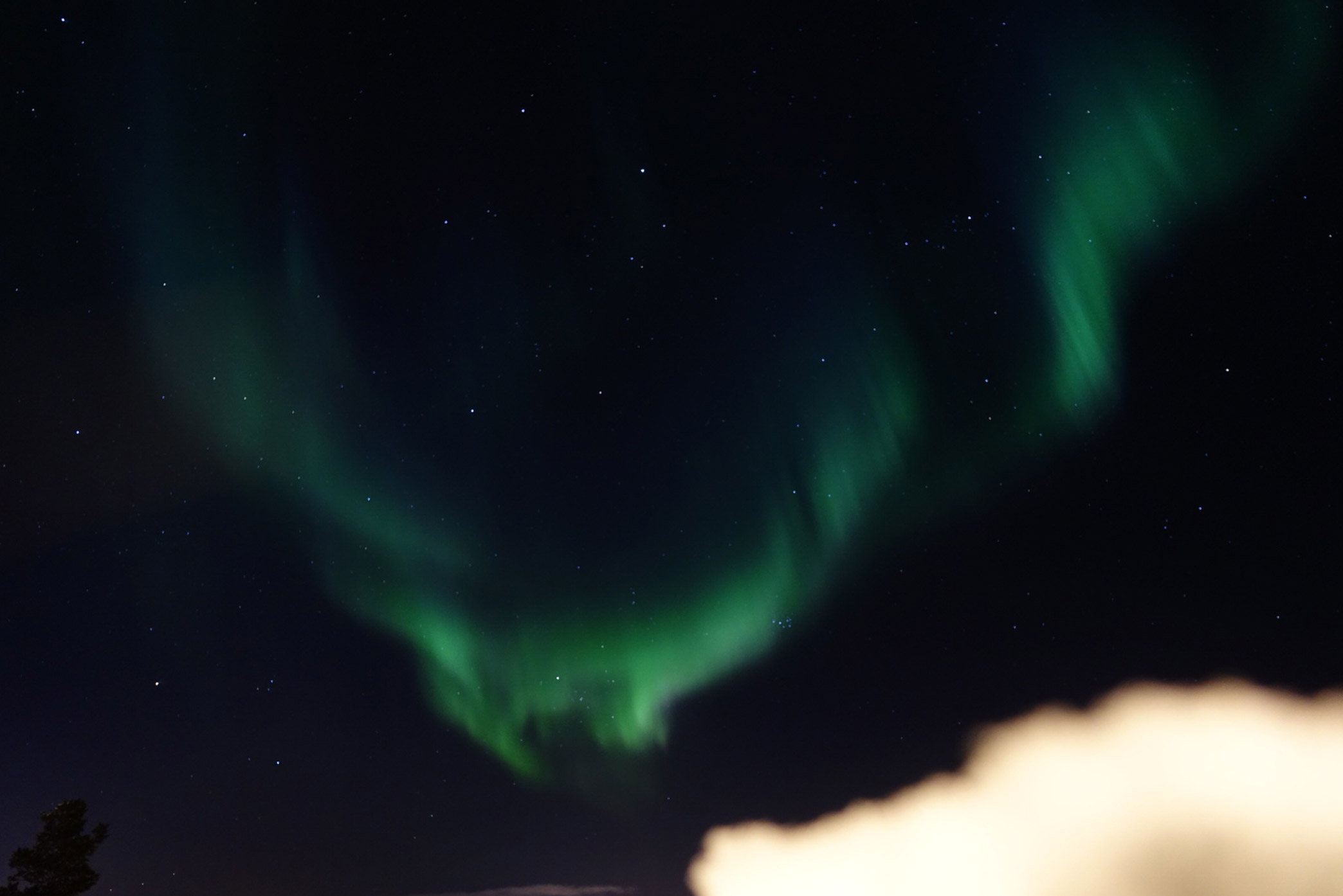 Diese Nacht wird mir für ewigs im Gedächtnis bleiben. Das erste Mal klingelte mein Handy um 23:35 "mit dem Nordlichtalarm von Kontiki "schwachses Nordlicht tief am Horizont". Ich dachte mir nicht viel dabei, zog meine Skisachen an und schaute draussen in den Himmel. Schnell rief ich meinen Zimmergenossen und schnell wurden die Lichter immer stärker und stärker. Das erste Mal richtige Nordlichter zu sehen, die dort oben am Himmel in grün, weiss und violett tanzen ist unbezahlbar. Keine Erlebnis ist mit diesem zu vergleichen - so etwas habe ich noch nie gesehen. Es scheint so, als falle der ganze Himmel hinunter auf dich. Jedes Auge sieht andere Bilder in den grün leuchtenden Streifen am Himmel. Von Wellen über Tiere und Gesichter; der Fantasie sind keine Grenzen gesetzt und jede Person erlebt die Nordlichter ganz anders. Eins ist klar: Speziell sind sie für jeden!