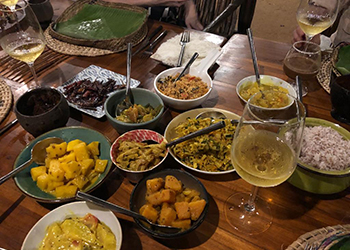 Was mich am meisten überraschte, waren die herzlichen Begegnungen mit den Einheimischen. Ihre Freundlichkeit und Offenheit hinterließen einen starken Eindruck. Ein Highlight war ein Abendessen mitten auf einem Reisefeld, zubereitet von zwei talentierten Frauen aus dem Dorf. Ihre 20 verschiedenen Currys mit exotischen Gewürzen und einem Hauch von Chili waren köstlich, aber ich erinnere mich auch daran, wie ich die Vielfalt etwas zu sehr genoss und die Nacht daraufhin etwas leidvoll verbrachte.