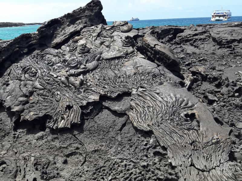 Wir spazieren über die Insel, vorbei an der salzigen Lagune, wo wir verschieden Vogelarten bestaunen. Der Flamingo hat aber keine Lust, sich zu zeigen! Wehe, wir wenden uns vom Weg ab, das gibt sofort eine Mahnung vom Guide. Der Weg führt vorbei an Galapagos Kakteen, die zu richtigen Bäumen heran wachsen. Die Äquatorsonne brennt auch um 17 Uhr noch heiss vom Himmel. Überwältigt vom ersten Halt kehren wir per Schlauchboot zurück auf die Sea Star Journey, wo uns ein gemütliches Nachtessen erwartet. Danach werden wir vom Schiff in den Schlaf gewiegt.