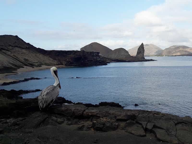 Auch die Insel Genovesa beeindruckt mich total, ein Vogelgeschnatter schlechthin. Rotfusstölpel und Maskentölpel, die ihre Eier ausbrüten. Ein Spektakel ist auch der Fregattvogel, der mit aufgeplustertem rotem Kehlsack das Weibchen beeindrucken möchte. Auf Bartolome erklimmen wir den Gipfel, von wo wir ein imposantes Panorama und eine Vielfalt an vulkanischen Formationen geniessen. Immer wieder gibt es auch die Möglichkeit zum Schnorcheln, hier begleiten uns Adlerrochen, tropische Fischschwärme, Riesenschildkröten, Haie und sogar Hammerhaie.